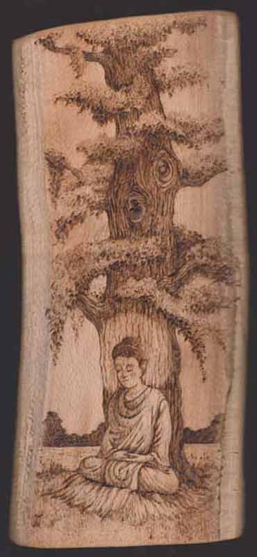 This was a project that I did for a lovely woman who specializes in dancing and who now owns her own dance troupe called Noumenon Dance Ensemble. She had chosen the image of the Buddha and had requested a burning to go with it.